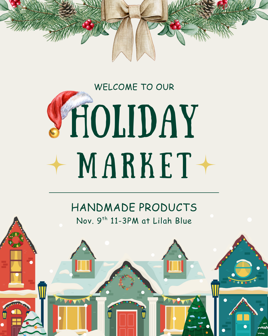 Join us for our Holiday Pop-Up Market on Saturday, November 9th from 11AM–3PM, at Lilah Blue Boutique!