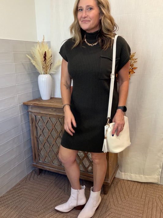 Mock Neck Olive Sweater Dress