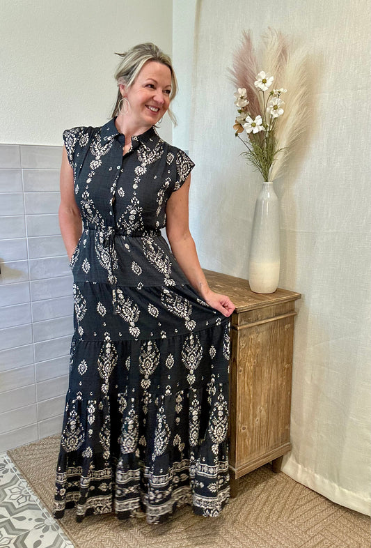 Soft Black Tiered Maxi Dress