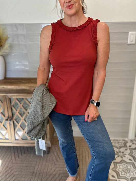 Solid Knit Ruffle Trim Tank - Burnt Sienna - Large