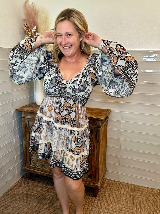 Smocked Bodice Lace Trim Dress - Medium