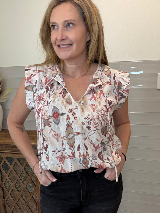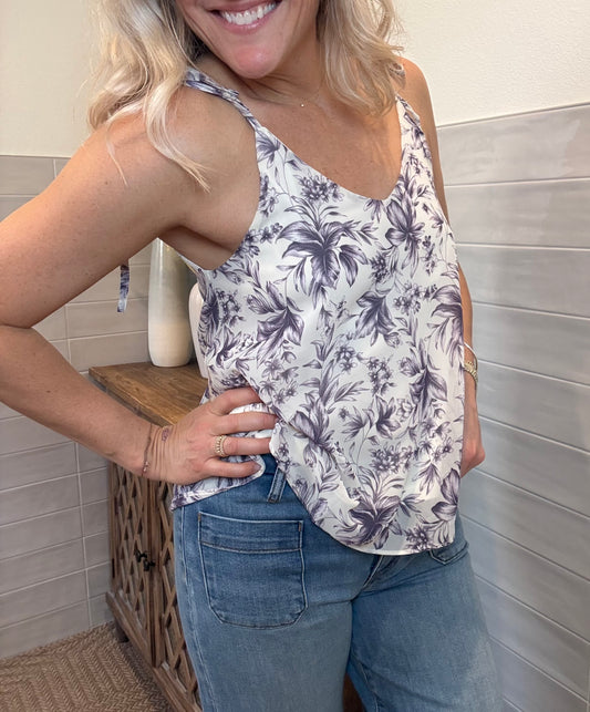 Crinkle Floral Spaghetti Tie Top