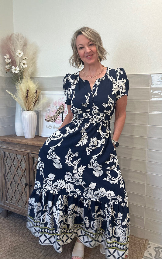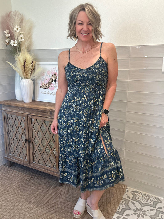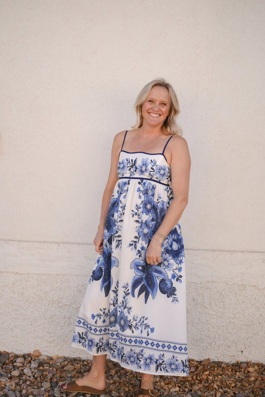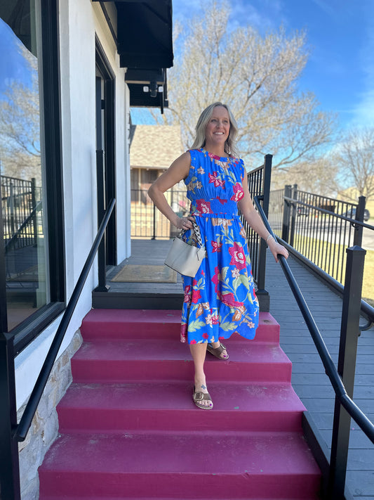 Blue Floral Midi Dress