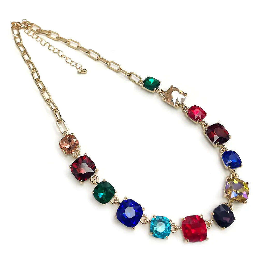 Get ready to shine with our Aster Necklace! Featuring an iridescent dark multi crystal statement design, this 16-18 inch necklace will add a touch of sparkle to any outfit. Make a statement and stand out with this unique piece.