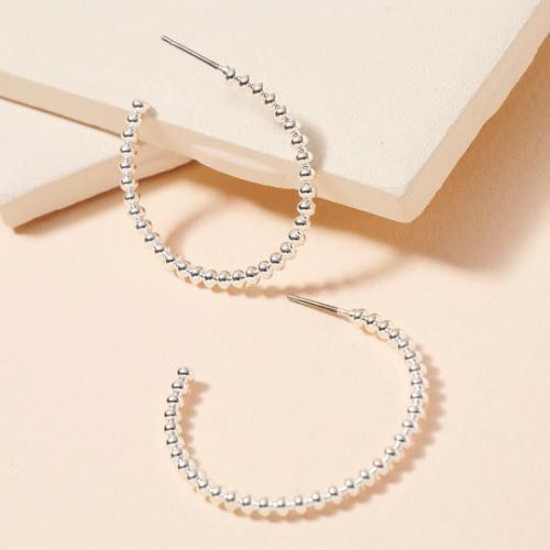 Add a touch of silver to your look with these playful Ruth Silver Earrings. The 1 1/4in bead hoops give a unique and stylish spin to the classic hoop earring. Perfect for adding a touch of fun to any outfit.