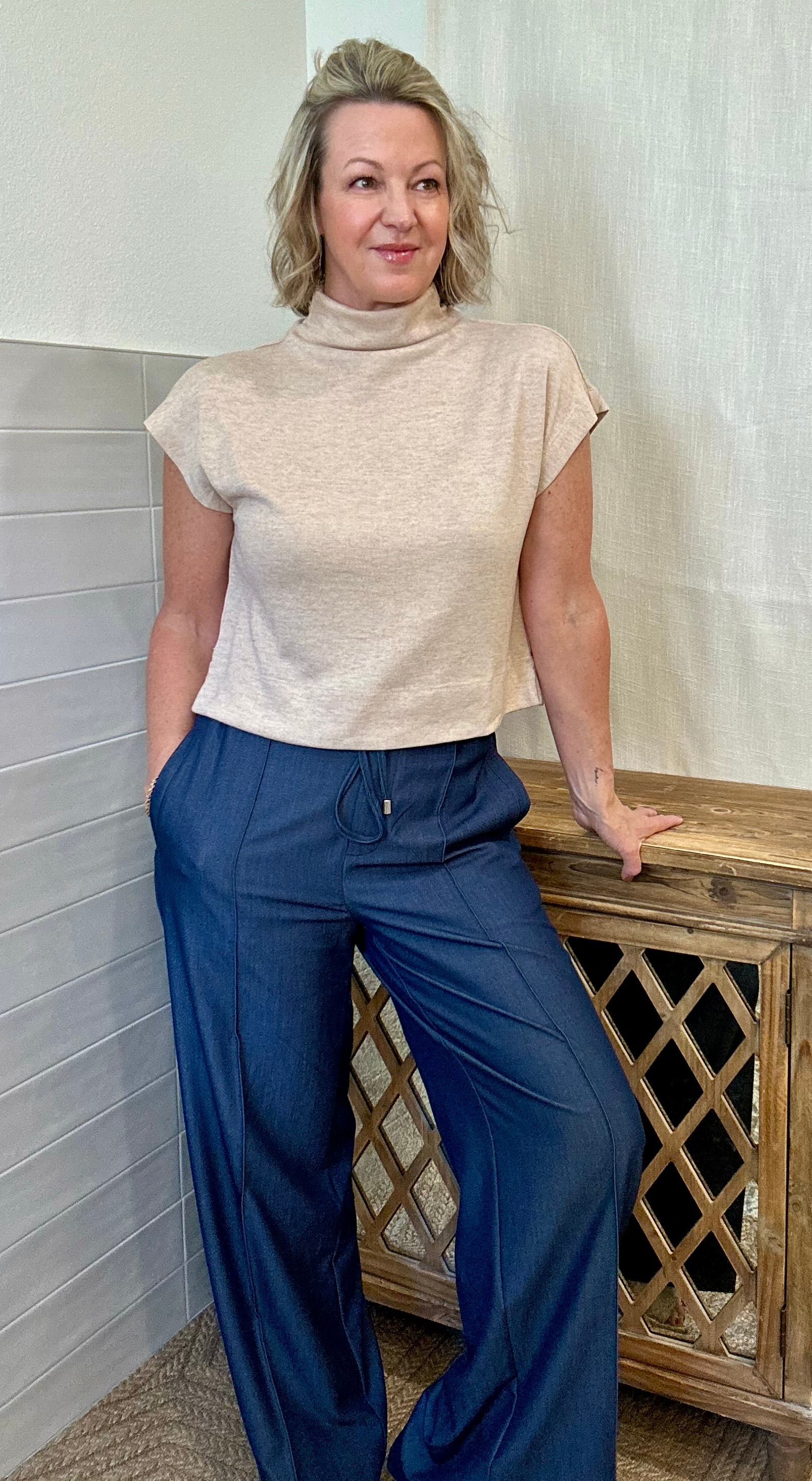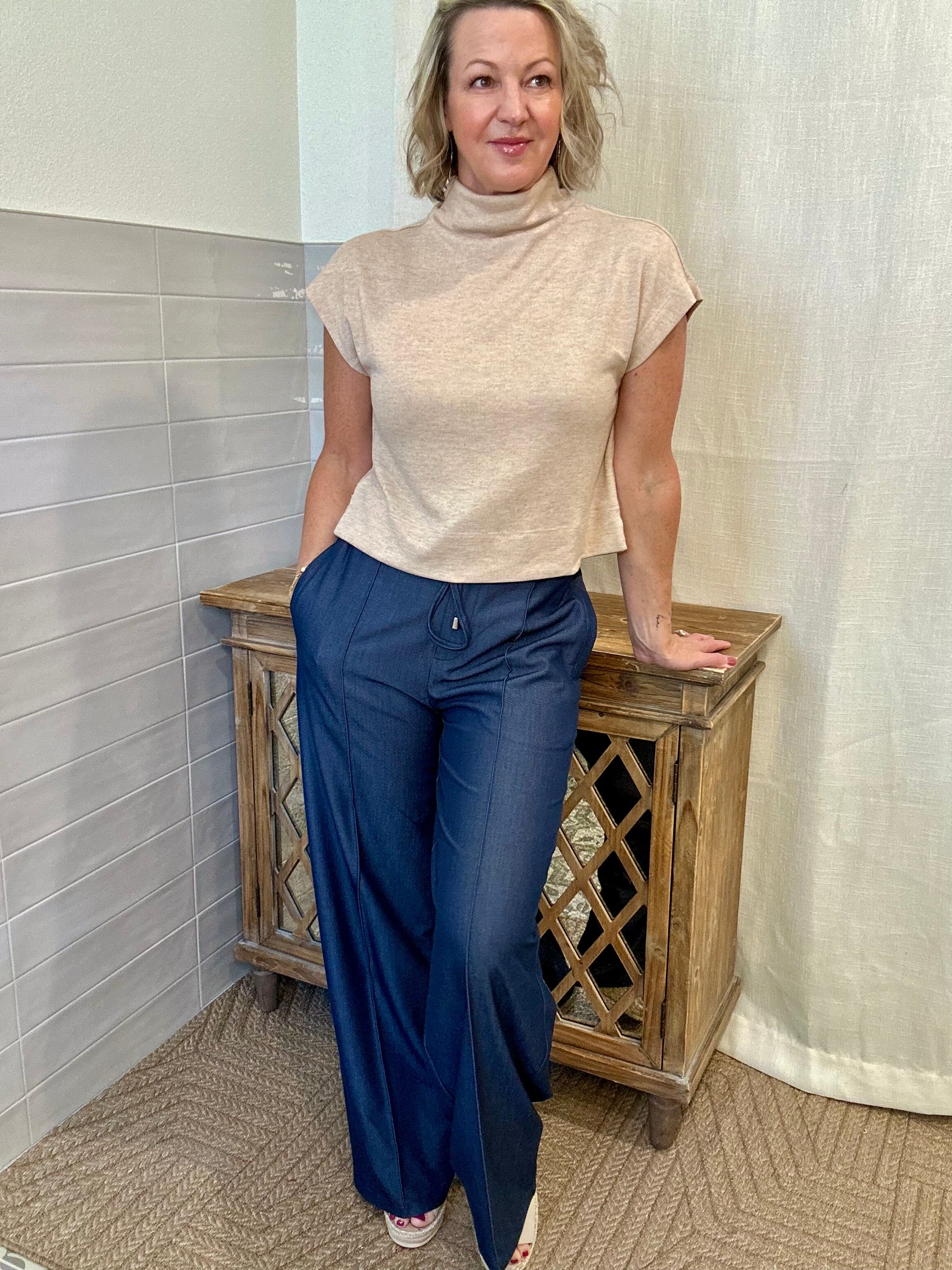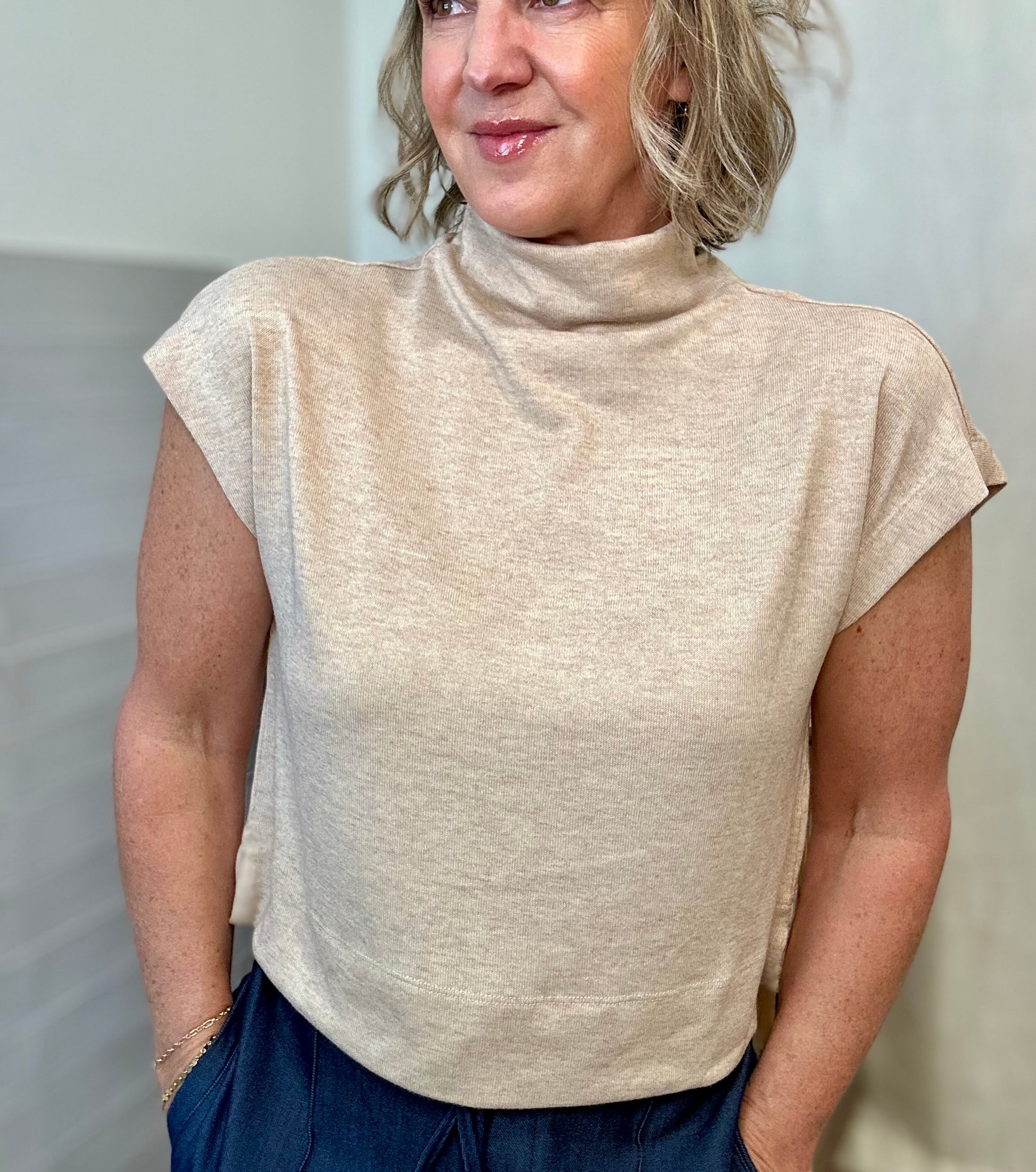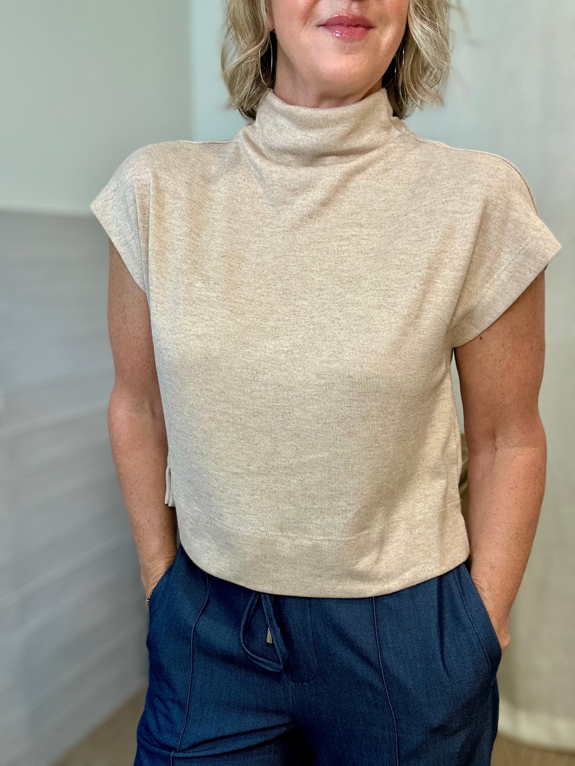 This airy pullover showcases a solid knit pattern with short sleeves and a mock neckline. Made from non-sheer knit material, it provides a cozy, unlined fit ideal for layering. Its semi-cropped length comfortably covers the waistline for a flattering look.