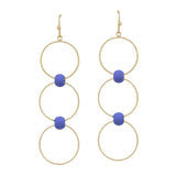 Gold Triple Drop Circle with Navy Beaded Accents 2" Earring