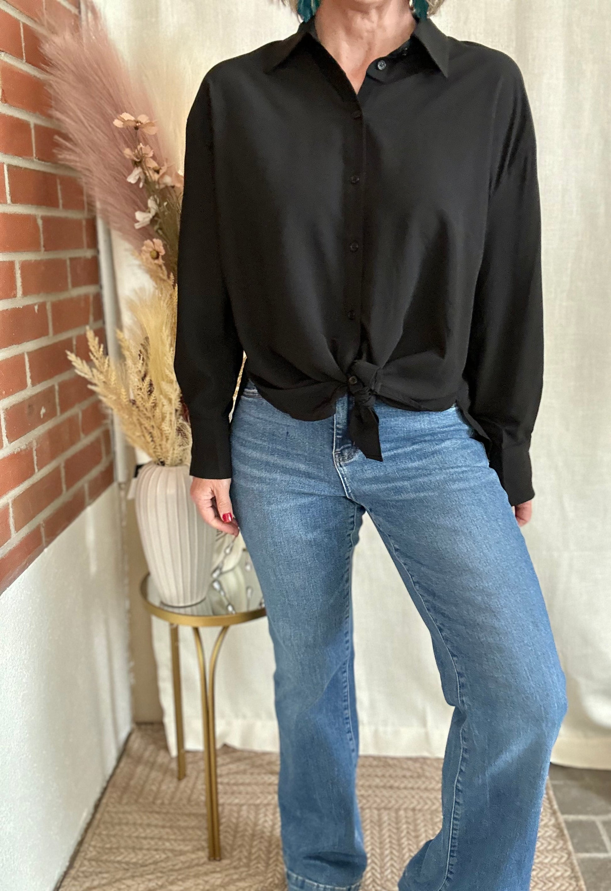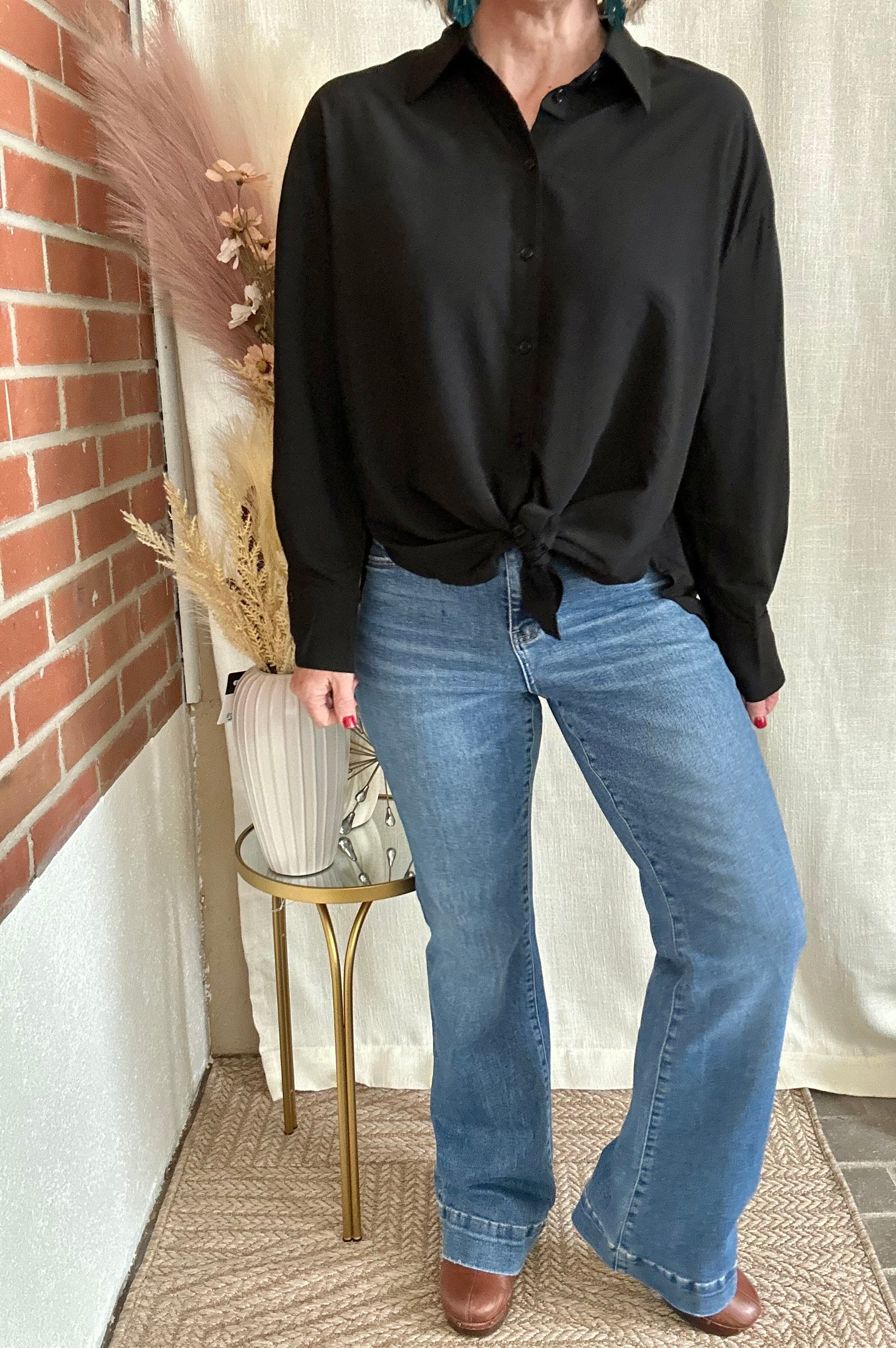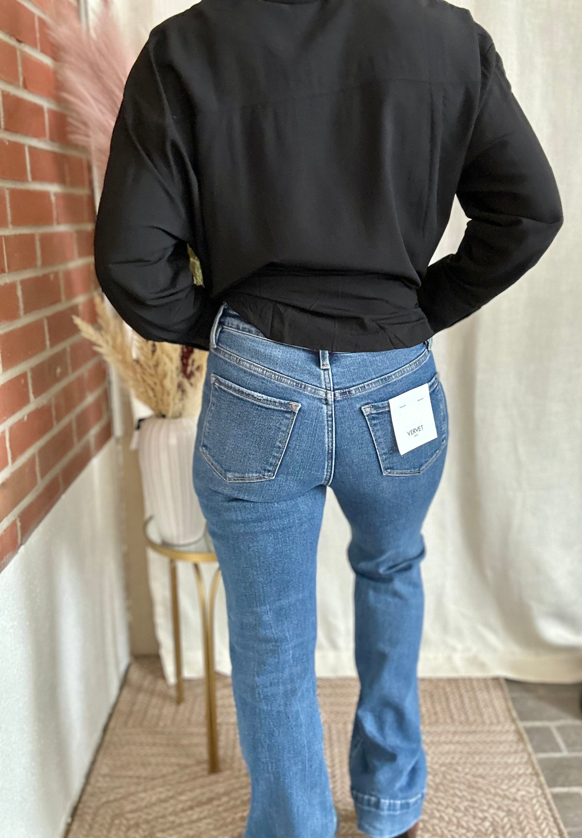Experience comfort and style in our High Rise Trouser Relaxed Jeans. Made with comfortable stretch denim and a high rise waist, these full length jeans feature a trendy trouser hem and relaxed flare fit. Elevate your wardrobe with these flattering and versatile jeans!
