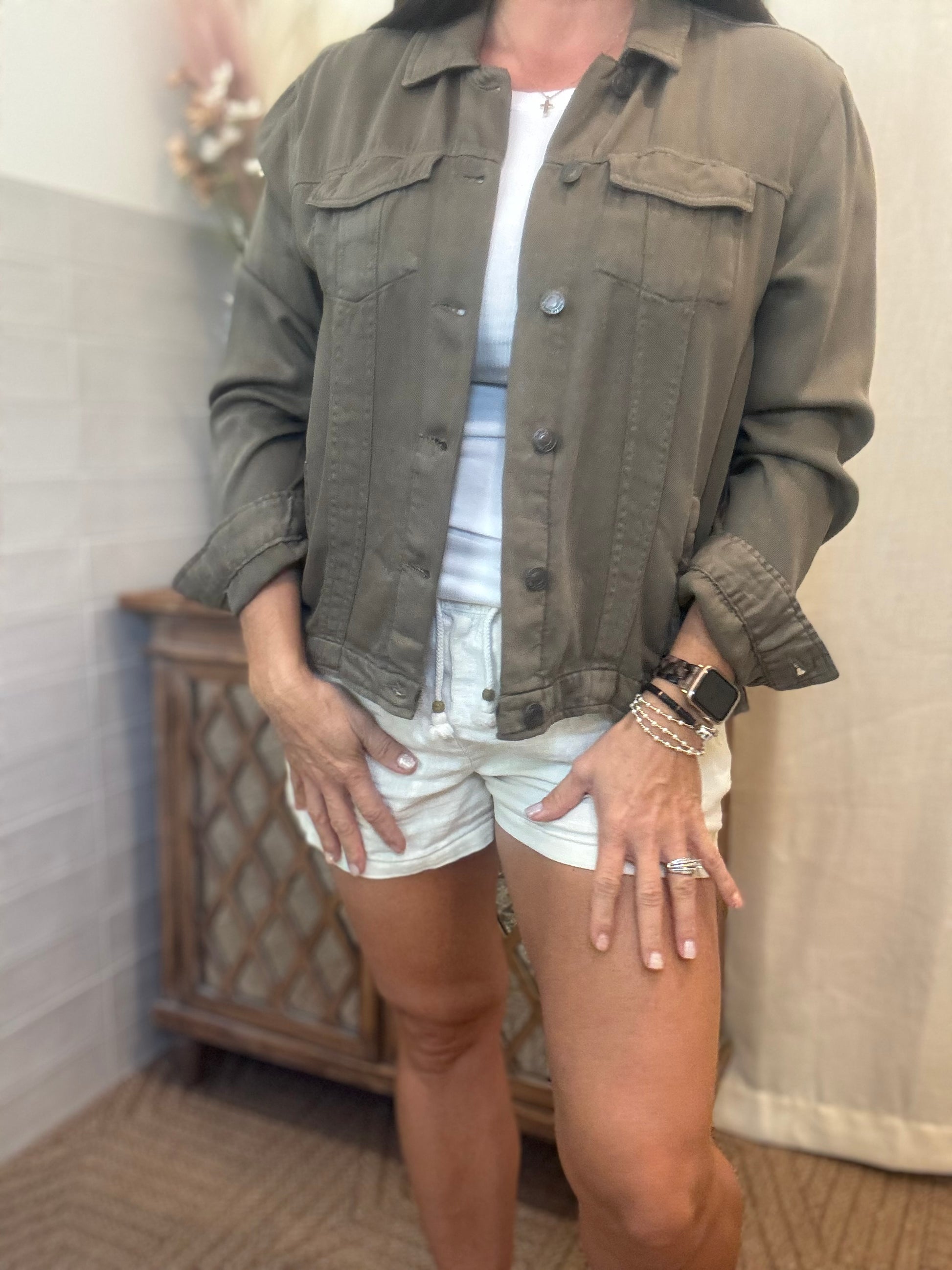 Meet the Jackie Denim Jacket - soft, stretchy, and oh-so-comfortable. This jacket is not only perfect for spring with its lightweight feel, but it will also keep you stylish and comfortable all day long. Get ready to turn heads and feel fabulous in the Jackie Denim Jacket.