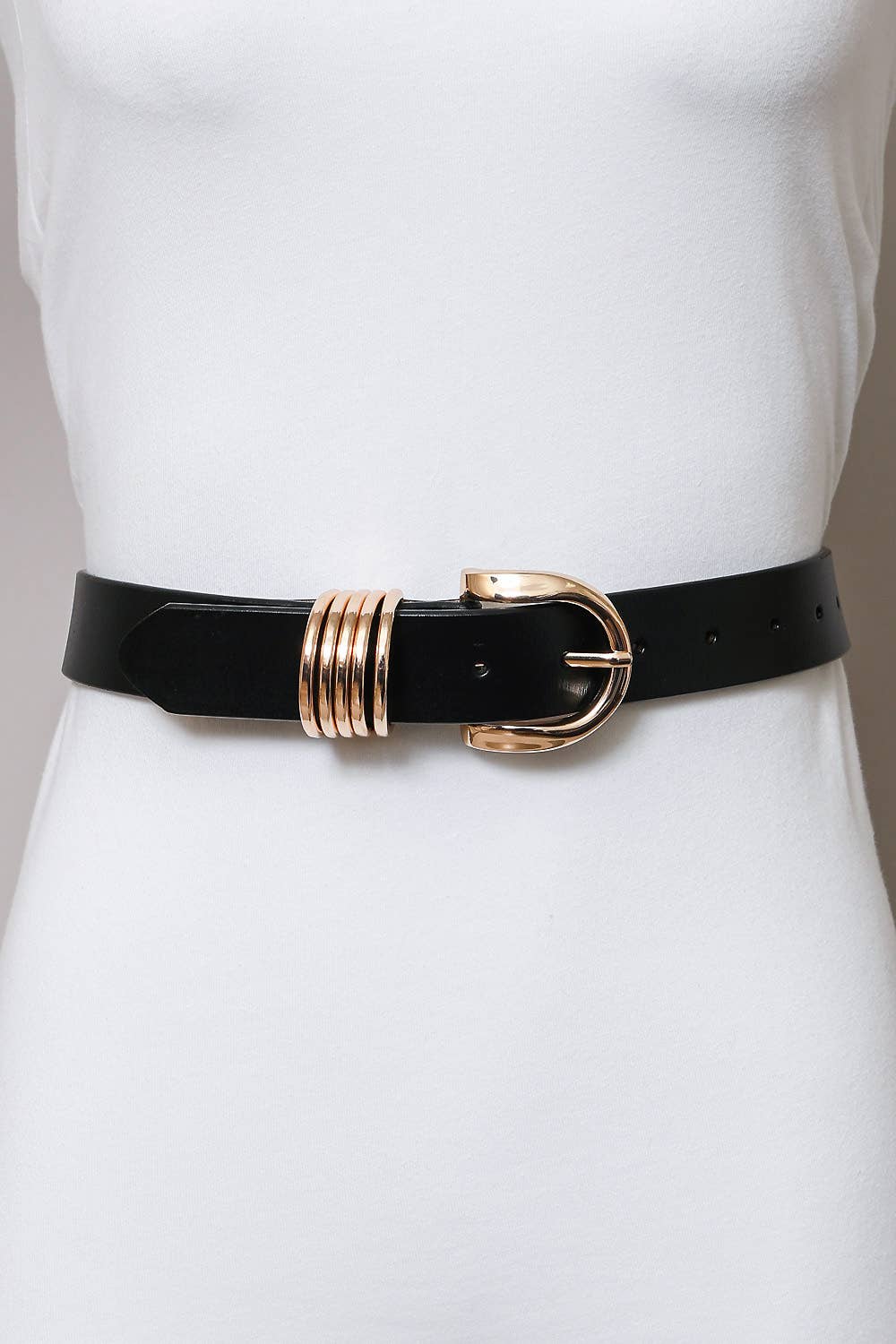 Gold Buckle Belt: Taupe and Black