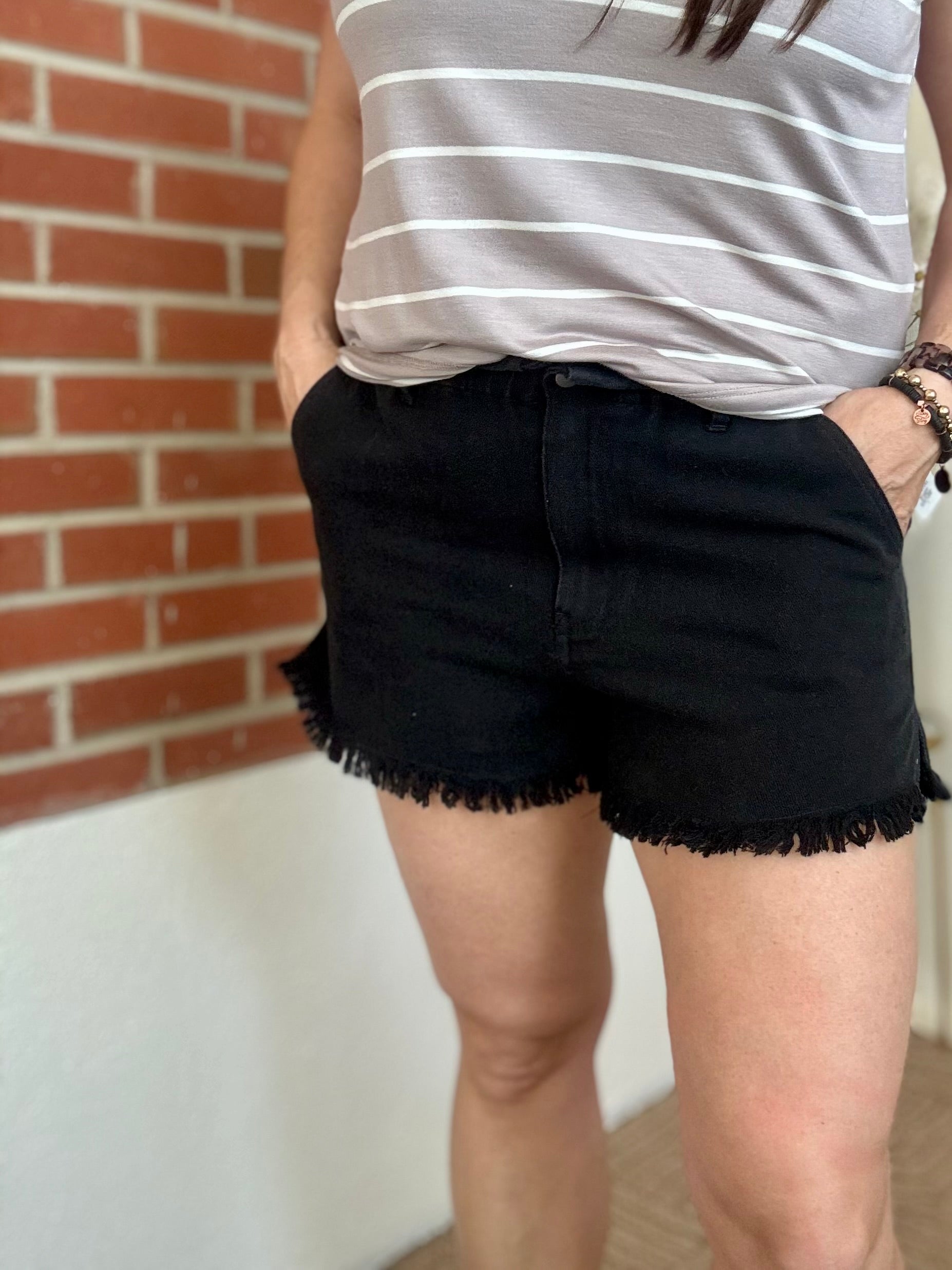 Satisfy your summer style cravings with our Black Mineral Wash Shorts. These cute, mineral washed shorts feature a frayed hem and functional pockets for added convenience. Perfect for any summer outing, these shorts will keep you cool and chic. Don't miss out!