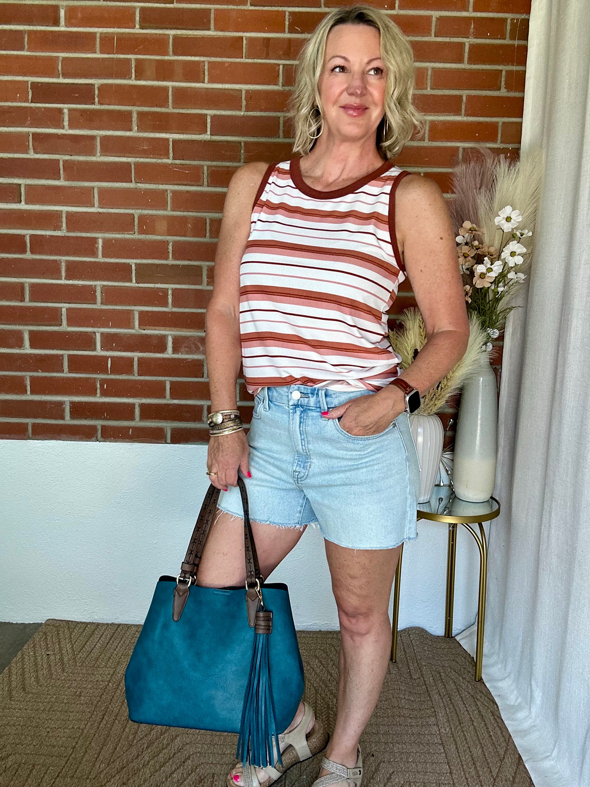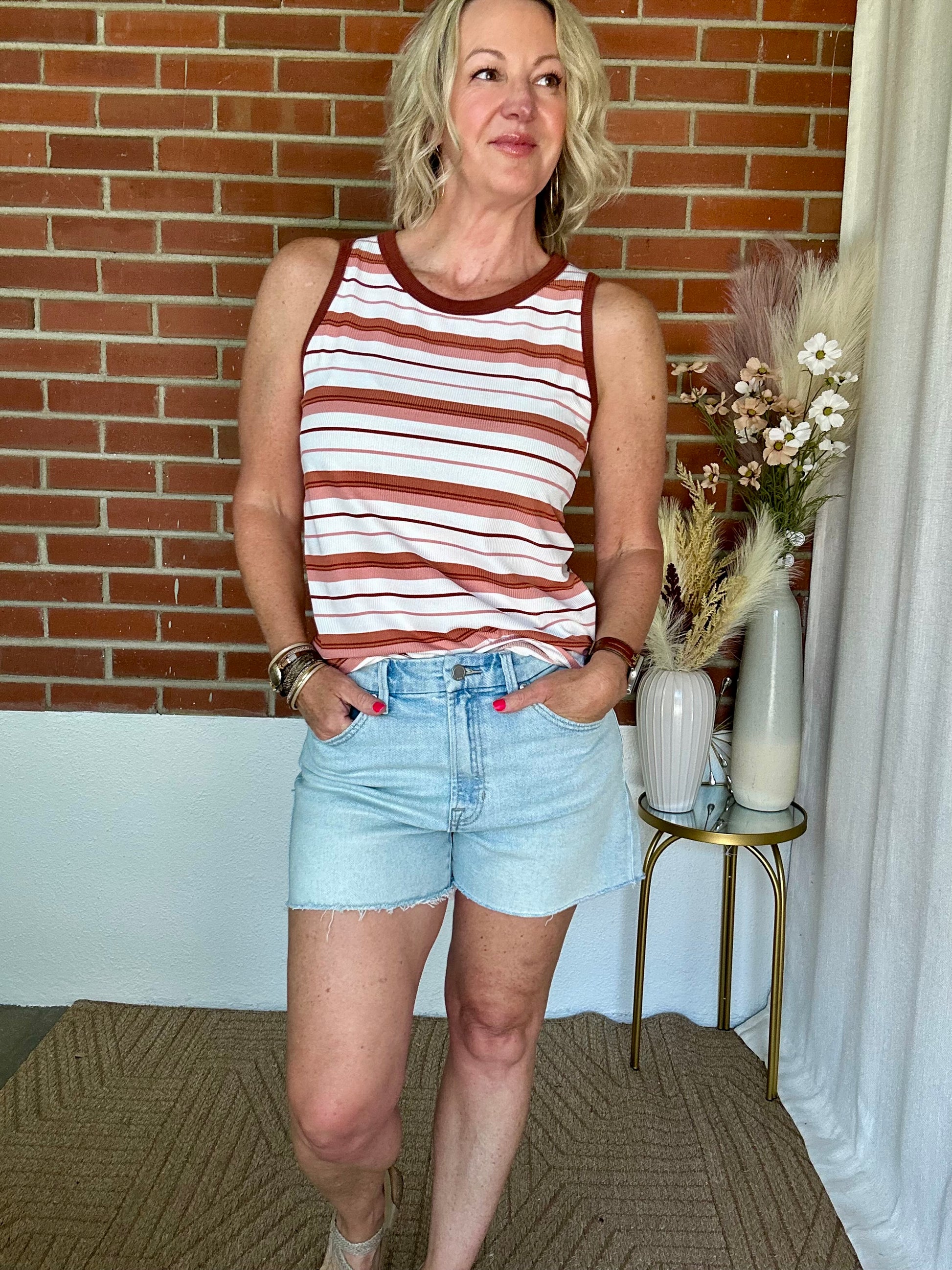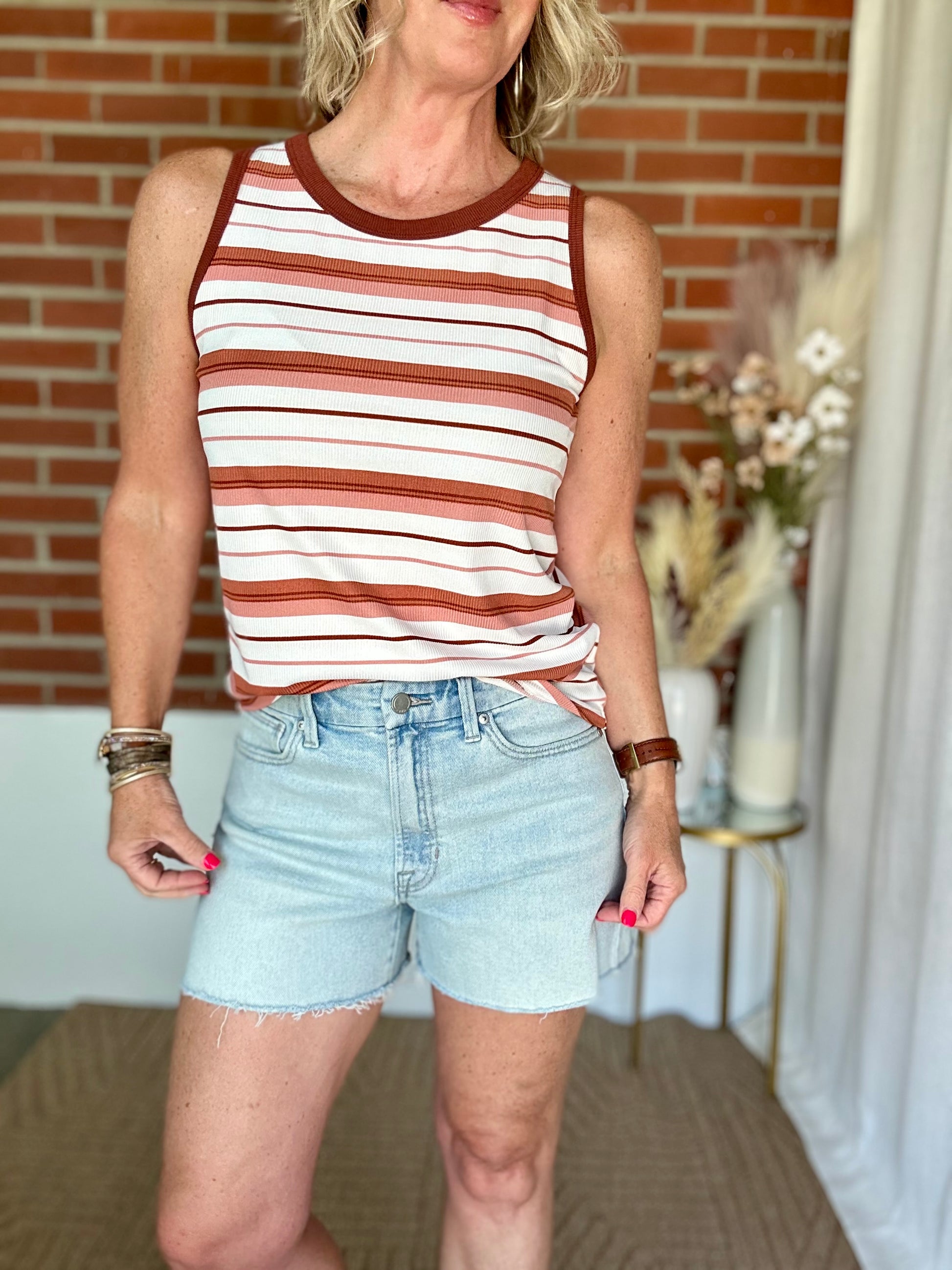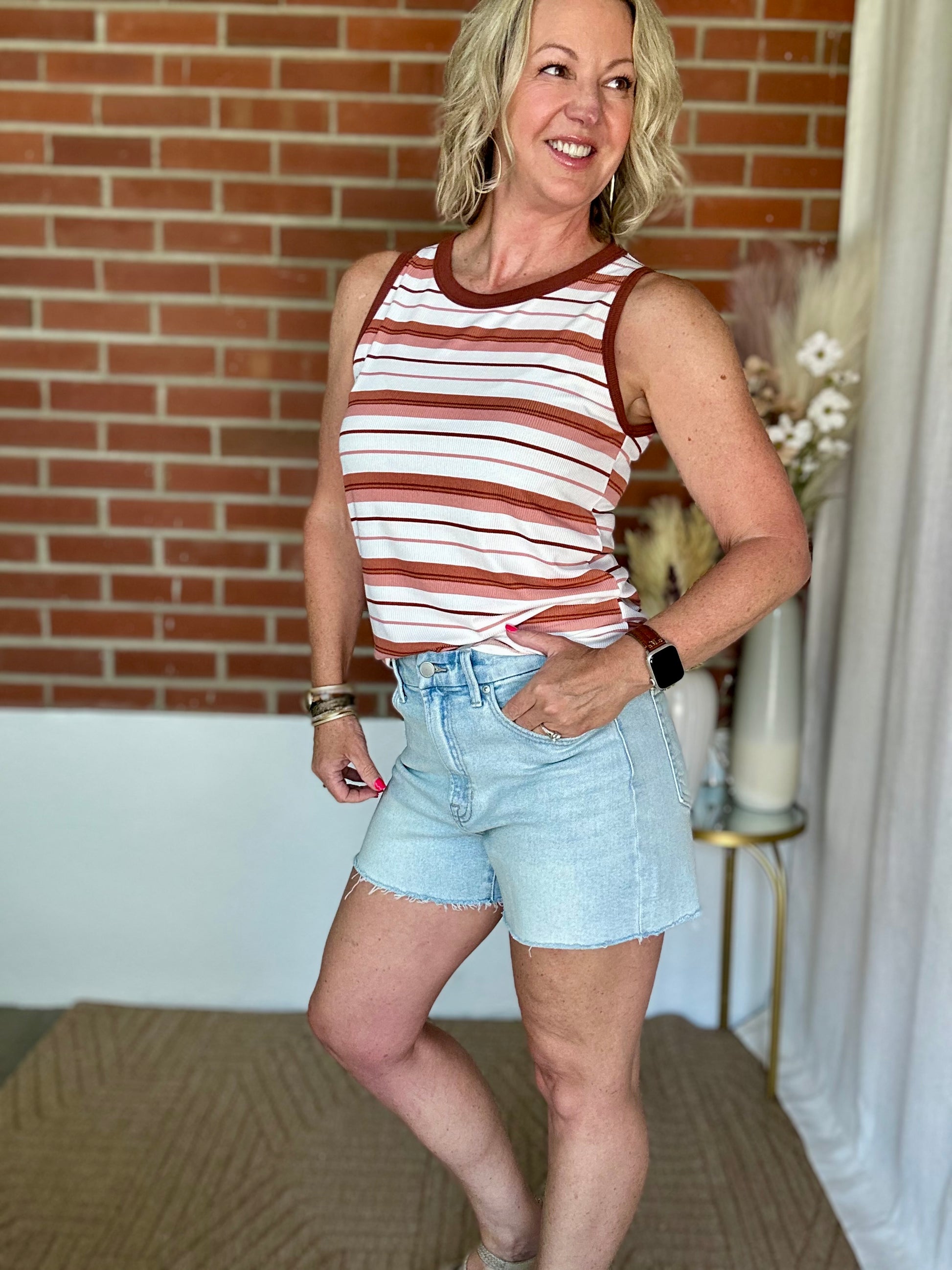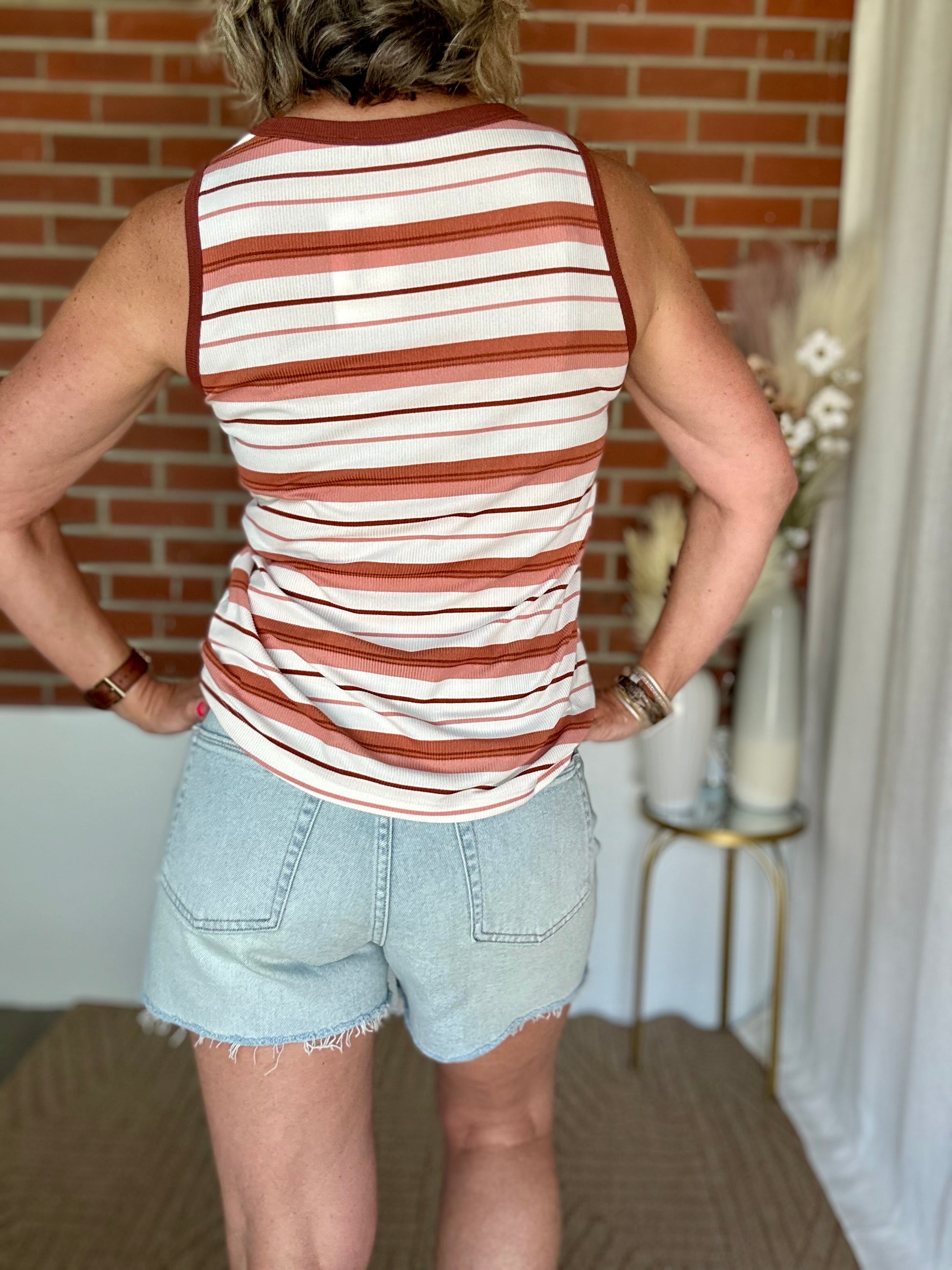 Elevate your summer wardrobe with our Marsala Striped Tank Top! Featuring vibrant color trims and a sleeveless design, this multi-striped top is perfect for any occasion. Embrace your unique style with this must-have piece and make a statement wherever you go.