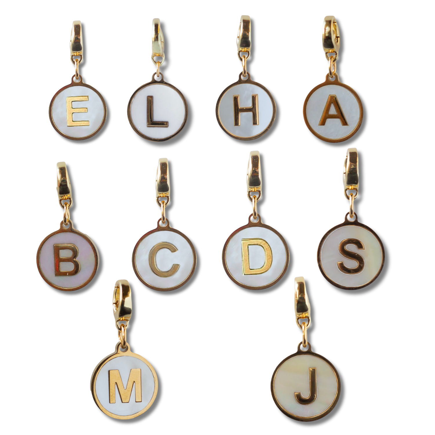 Add a personal touch with our Alphabet Charm Collection! This pack features the ten most common first and last name letters, perfect for customizing any necklace or bracelet. Includes 2 charms each of 10 different letters, totaling 20 charms. These alphabet charms pair beautifully with our Gold Necklace Collection and Gemstone Stretch Bracelets. Charms come carded on a stylish tab back card with the message, "You're Charming." Perfect for displaying on our Earring/Display base, these charms are a delightful addition to your Charm Bar. Make every piece unique with a touch of personalization!
