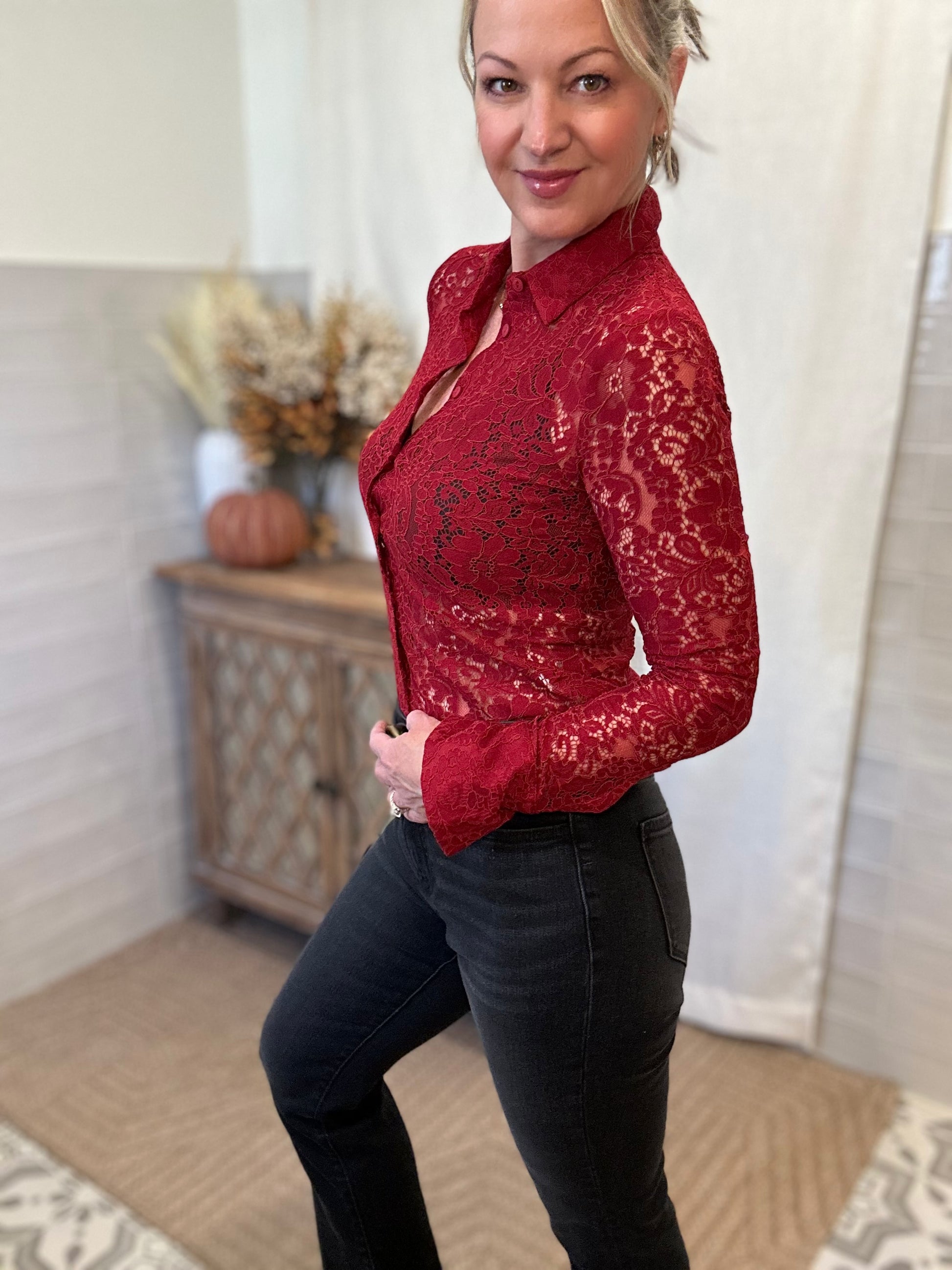 This charming blouse combines classic button-down styling with delicate floral knit accents for an effortlessly polished look. Crafted from quality woven fabric, it's the perfect piece to elevate your everyday wardrobe with timeless elegance and subtle sophistication.