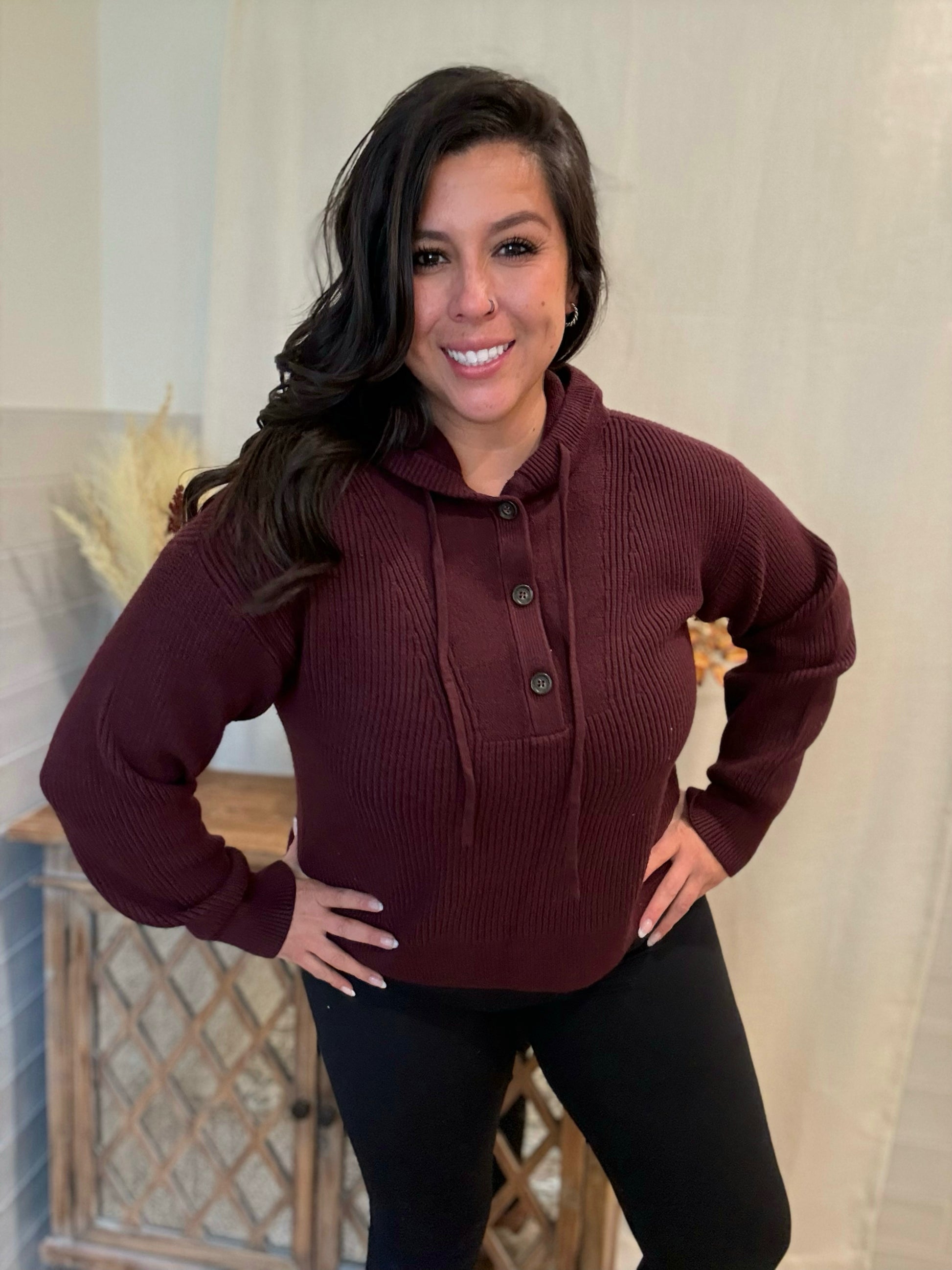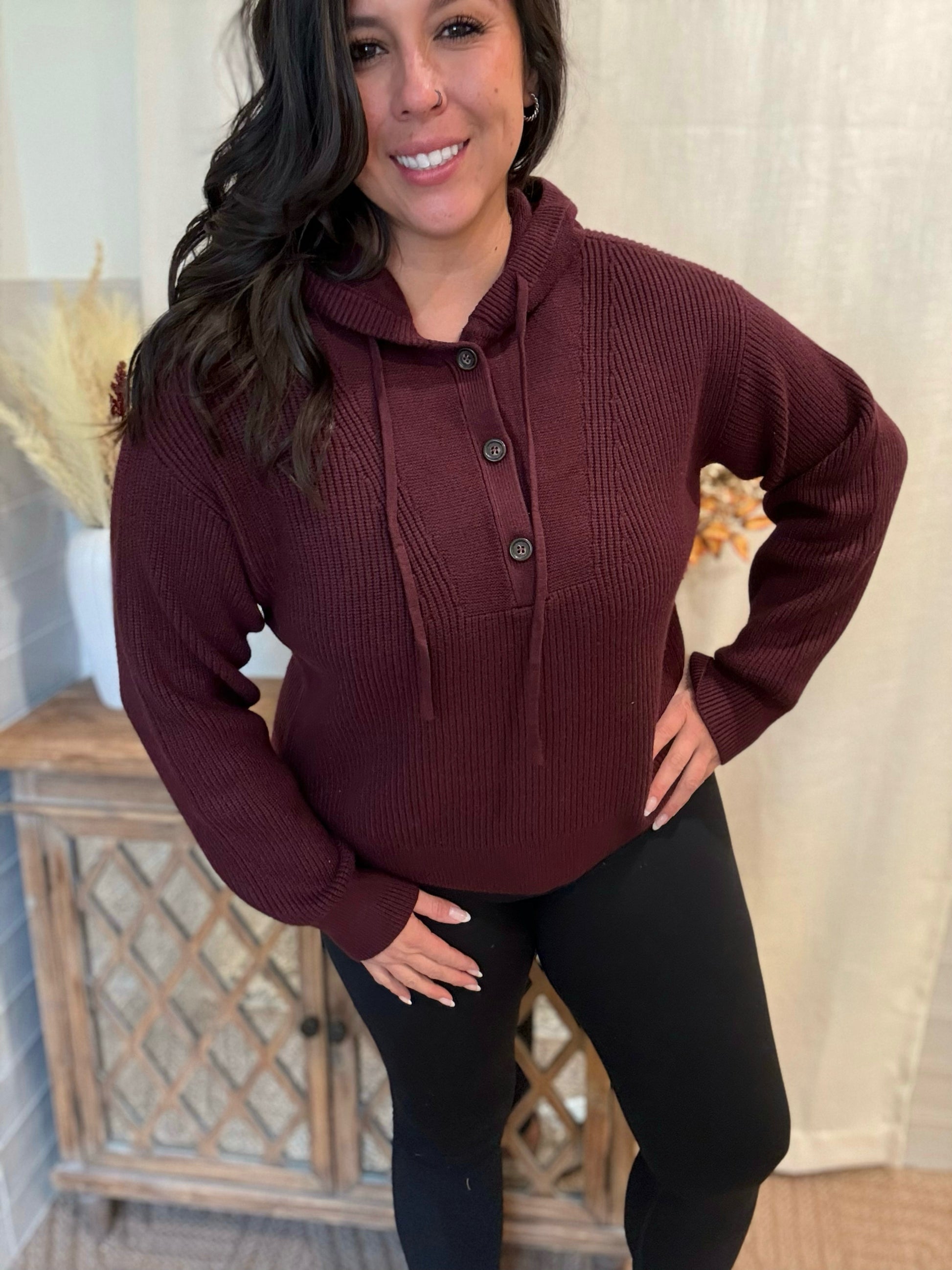 Stay comfortable and stylish with the Dolly Sweater Hoodie, crafted from medium-weight fabric for warmth without bulk. Its cozy hood adds an extra layer of comfort, perfect for cooler days or relaxed weekends. The rich plum color brings a touch of vibrant elegance to your casual wardrobe, making this hoodie an essential piece for effortless layering and everyday wear.