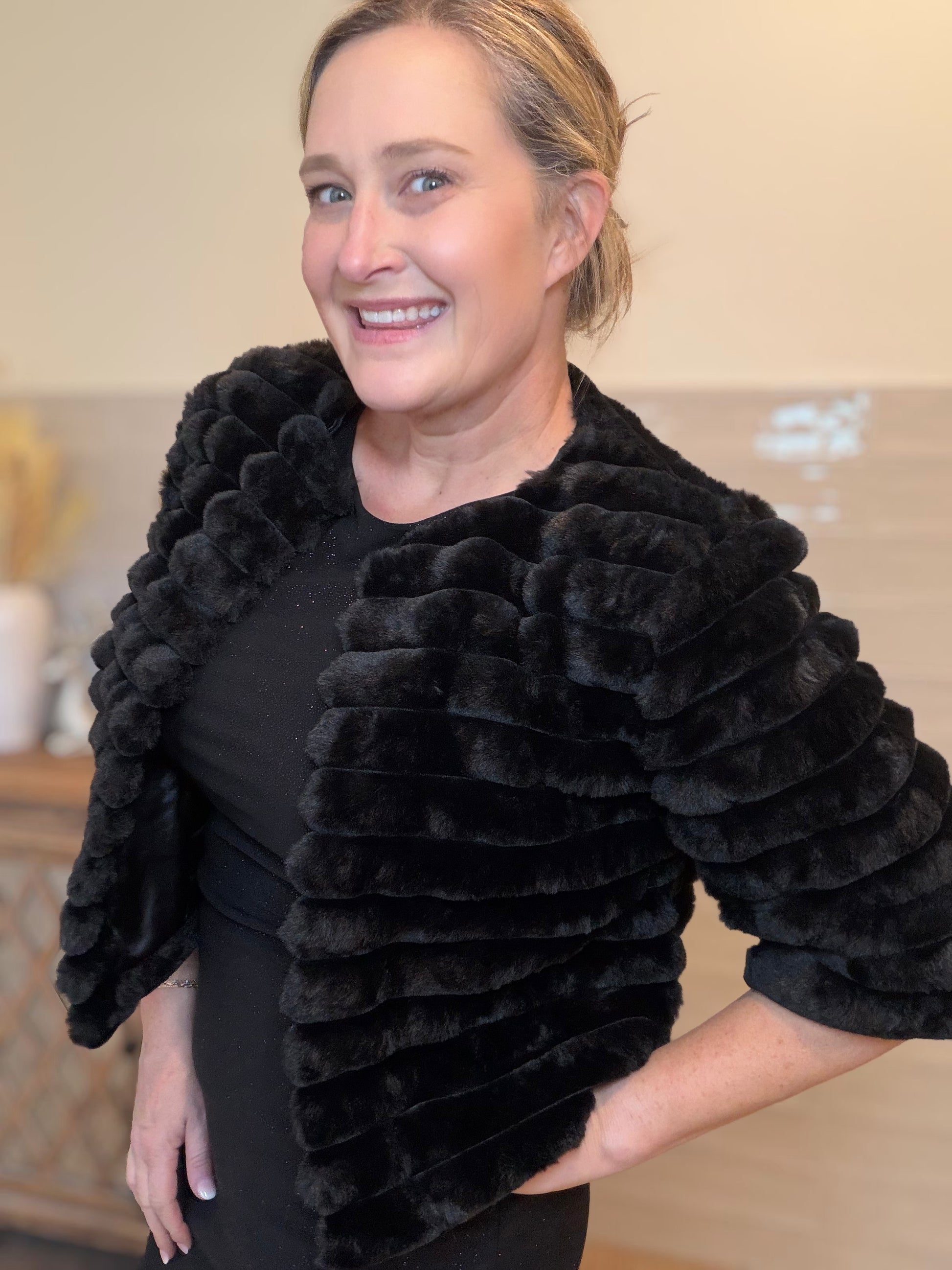Effortlessly elevate any outfit with this luxurious faux fur crop jacket. The plush, touchable fabric pairs perfectly with a hint of stretch for comfortable all-day wear. Layer it over your favorite dress or party top for an instant dose of glamour and sophistication.