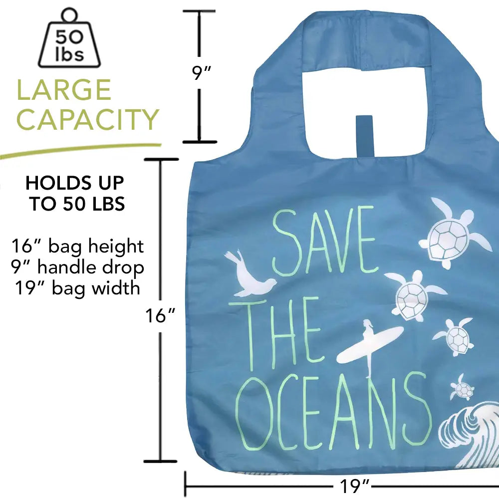 The ‘Blu’ branded eco-friendly reusable shoppers do the heavy lifting that help keep plastic out of our oceans while looking smart.
