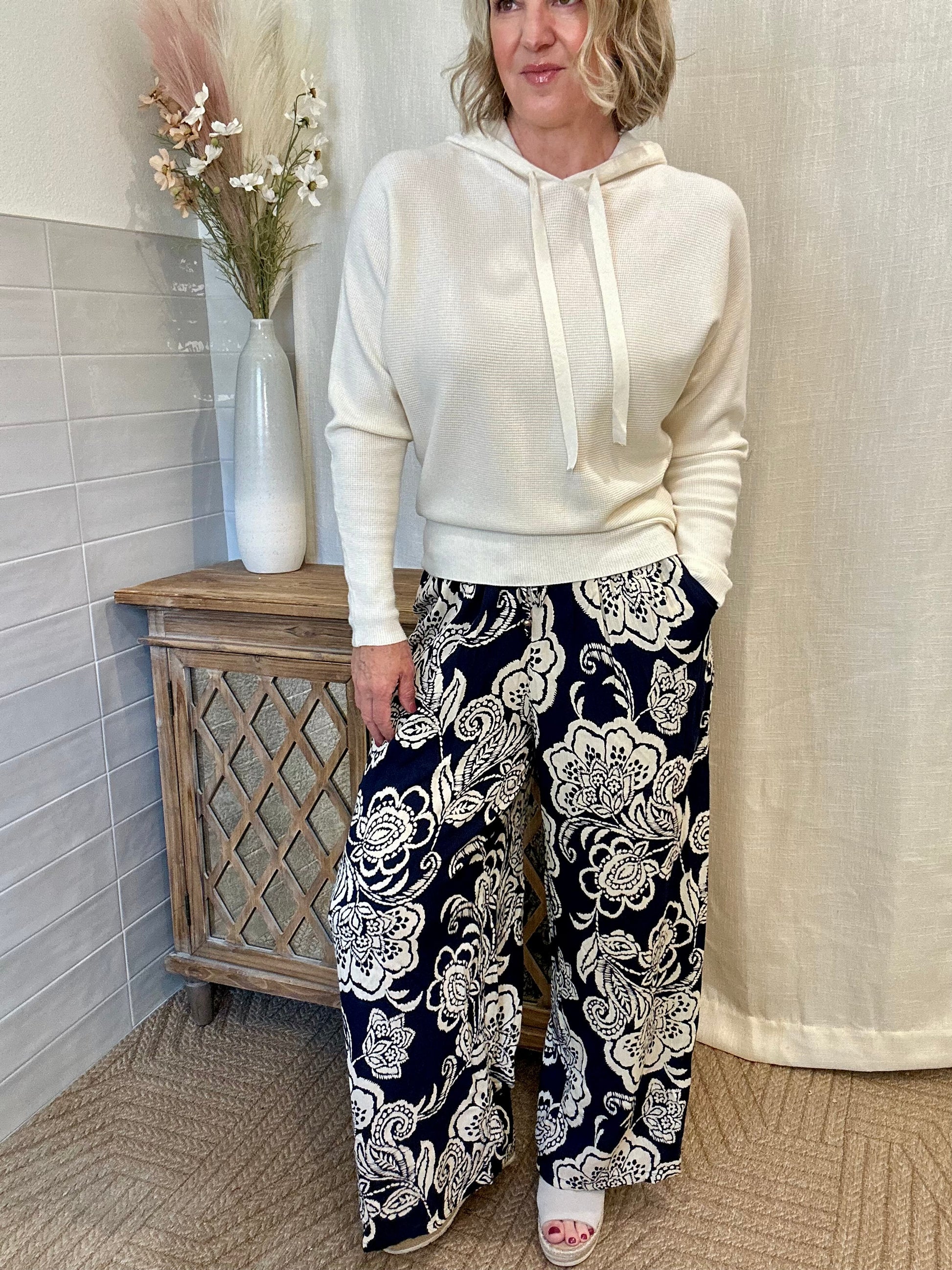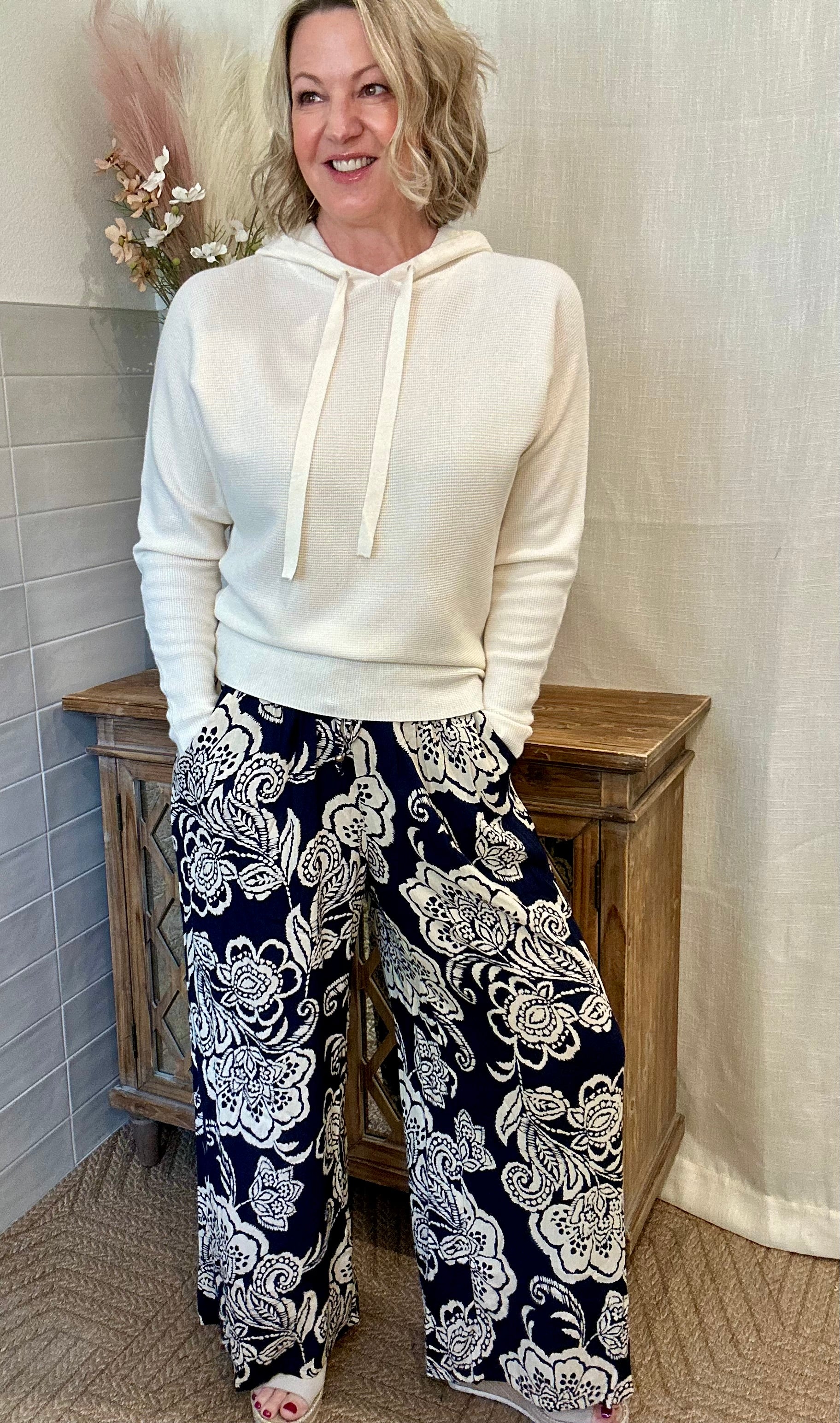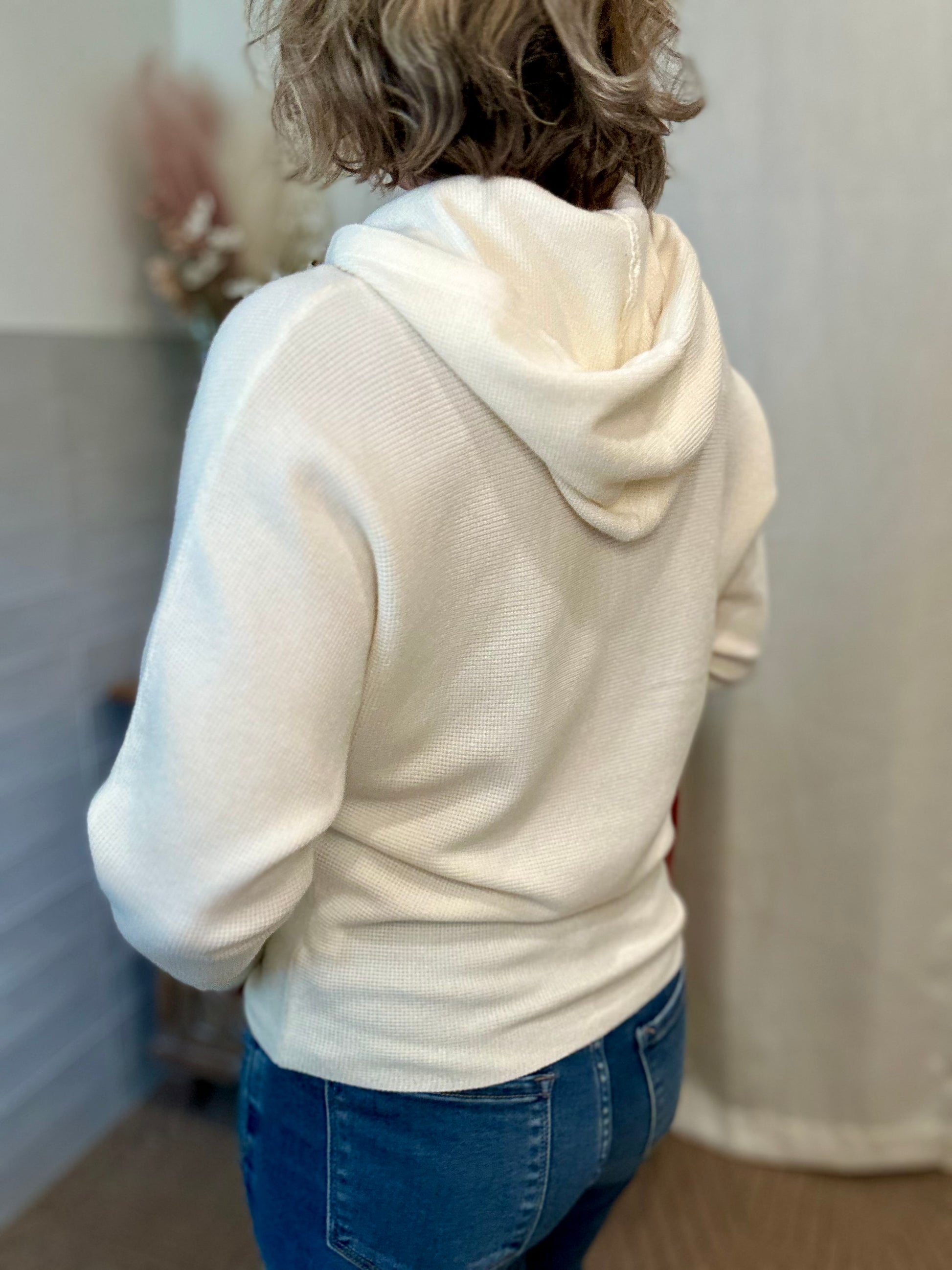 Experience cozy comfort with this ivory pullover hoodie featuring a delicate mini waffle texture and relaxed dolman sleeves. Crafted to be soft and stretchy, it moves with you while keeping you warm and stylish.