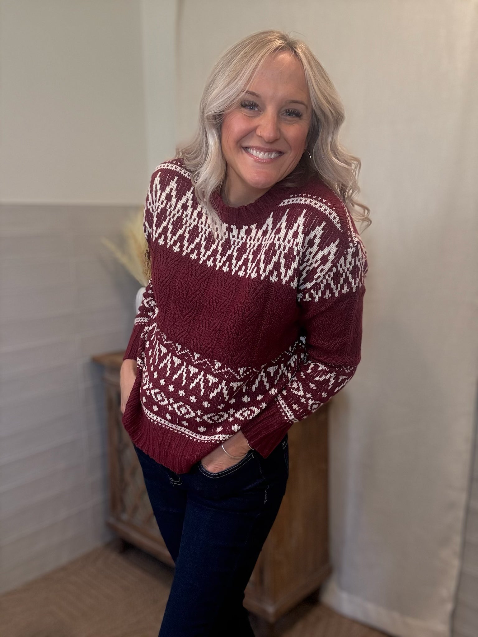 Experience unparalleled comfort with this ultra-cozy cable knit sweater top, featuring a stylish printed design for added flair.