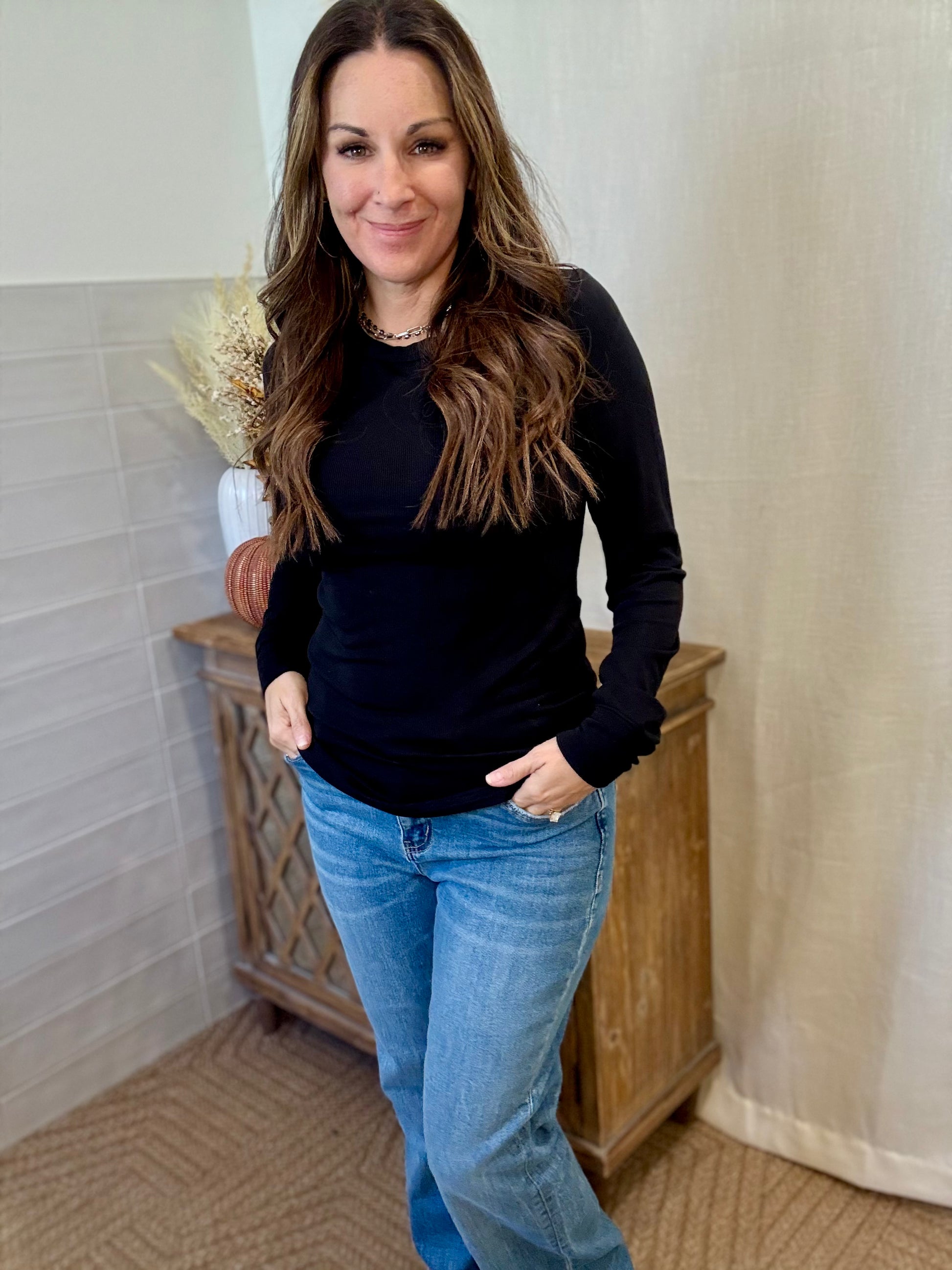 Style meets comfort with the Stacy Long Sleeve Top. Featuring a classic crew neckline and long sleeves, this top is a must-have for any wardrobe. Dress it up or down for endless outfit options and feel confident and stylish all day long.