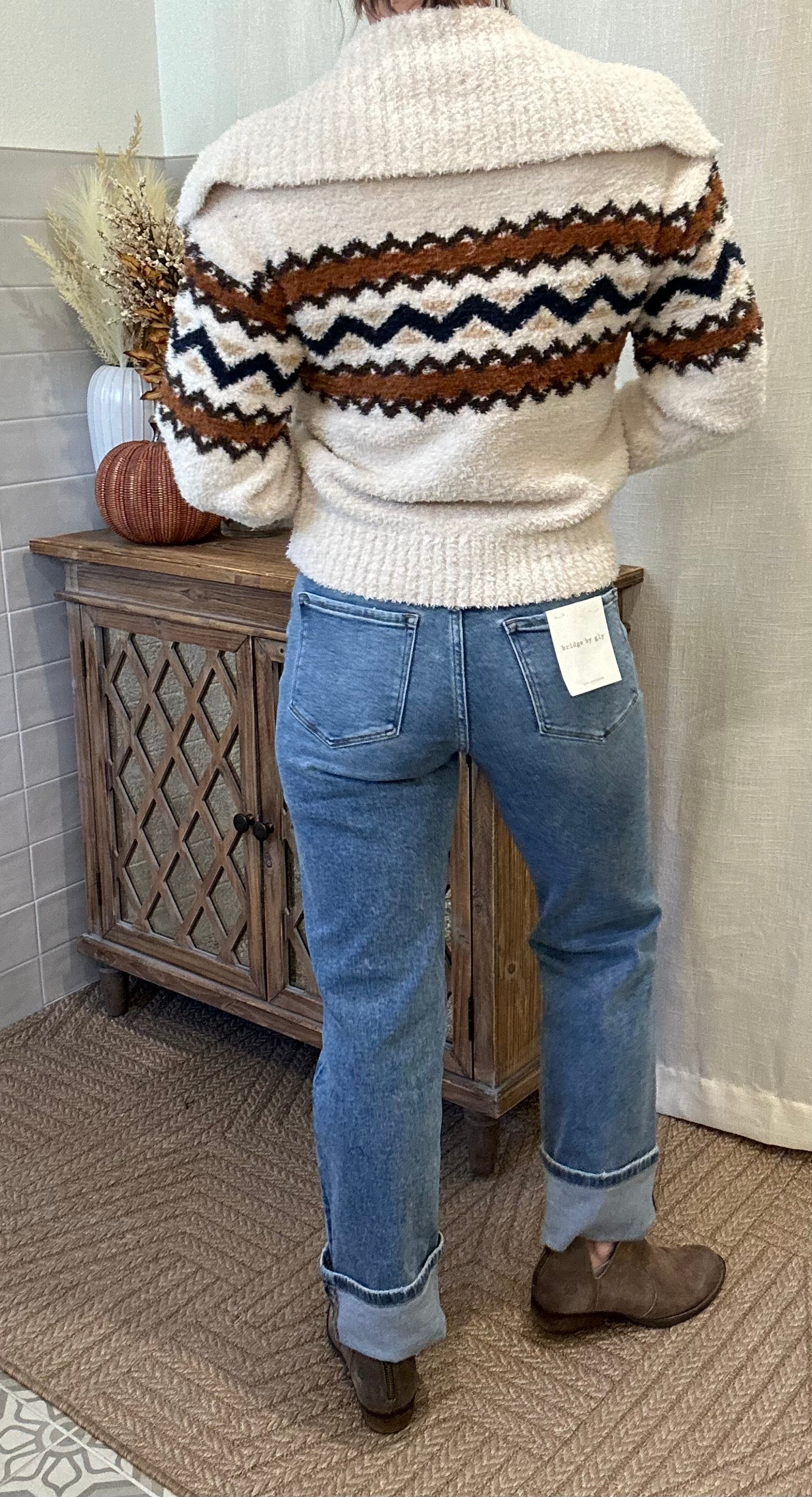 F. Rise: 10" / inseam: 27" / leg opening: 14 1/2" / cuff: 4" x 1