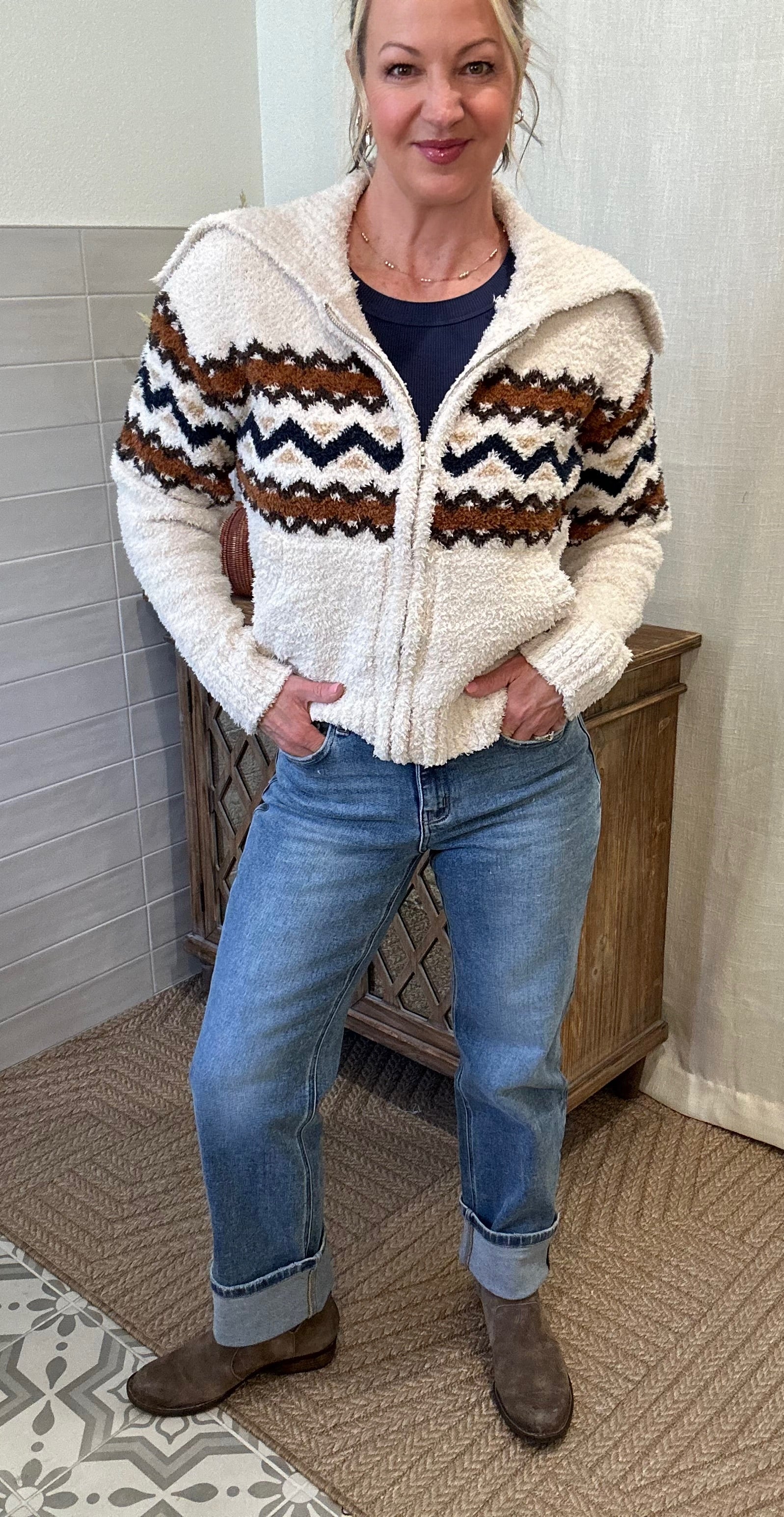 Elevate your denim game with these striking high-rise straight jeans that deliver both style and comfort. Crafted from flexible stretch denim, they feature a flattering high-rise waist paired with a sleek slim-straight silhouette. Subtle distressing adds contemporary edge, while the single cuff hem and cropped length create a polished, intentional look. Perfect for effortless everyday wear or dressed-up occasions.