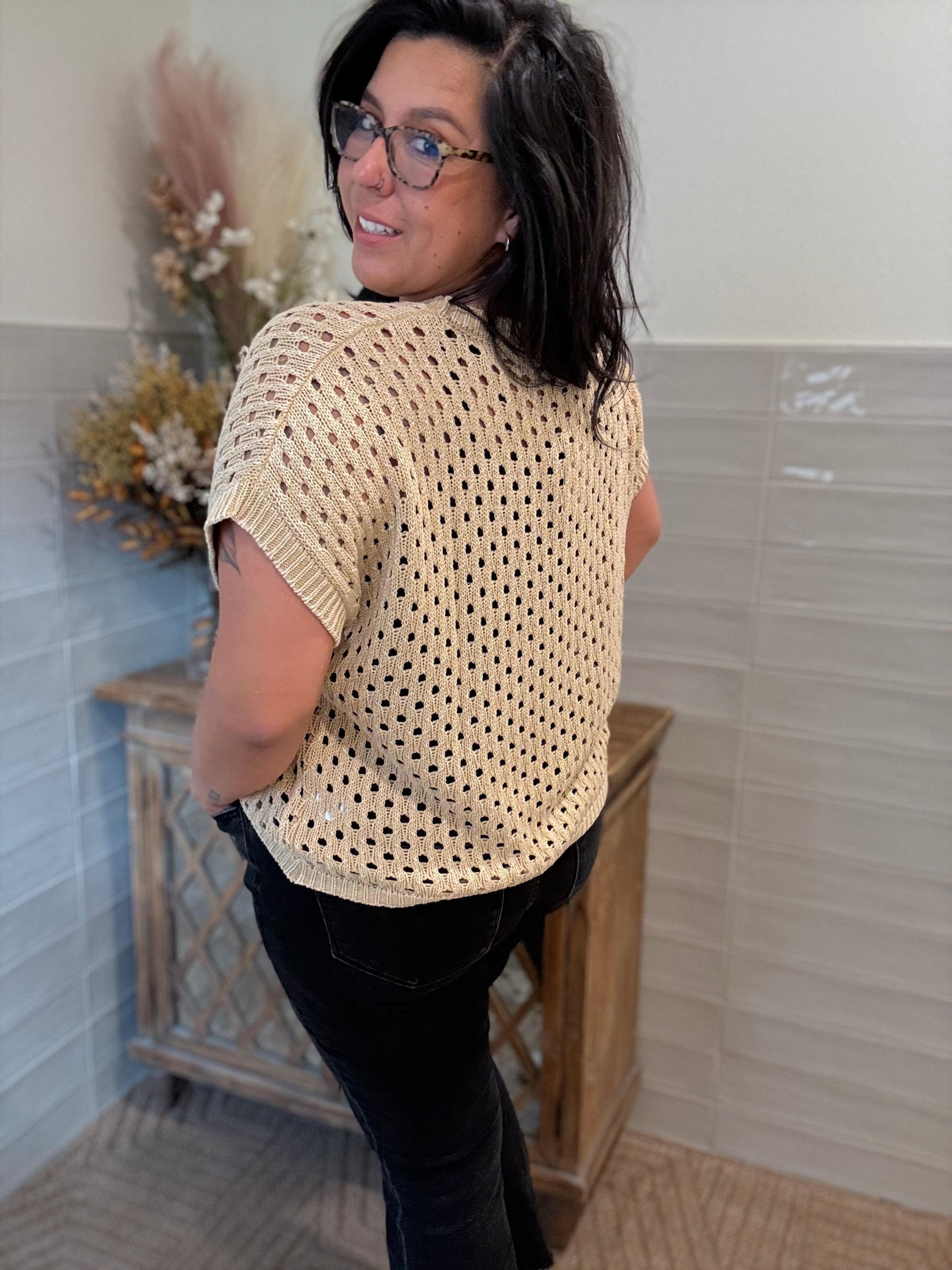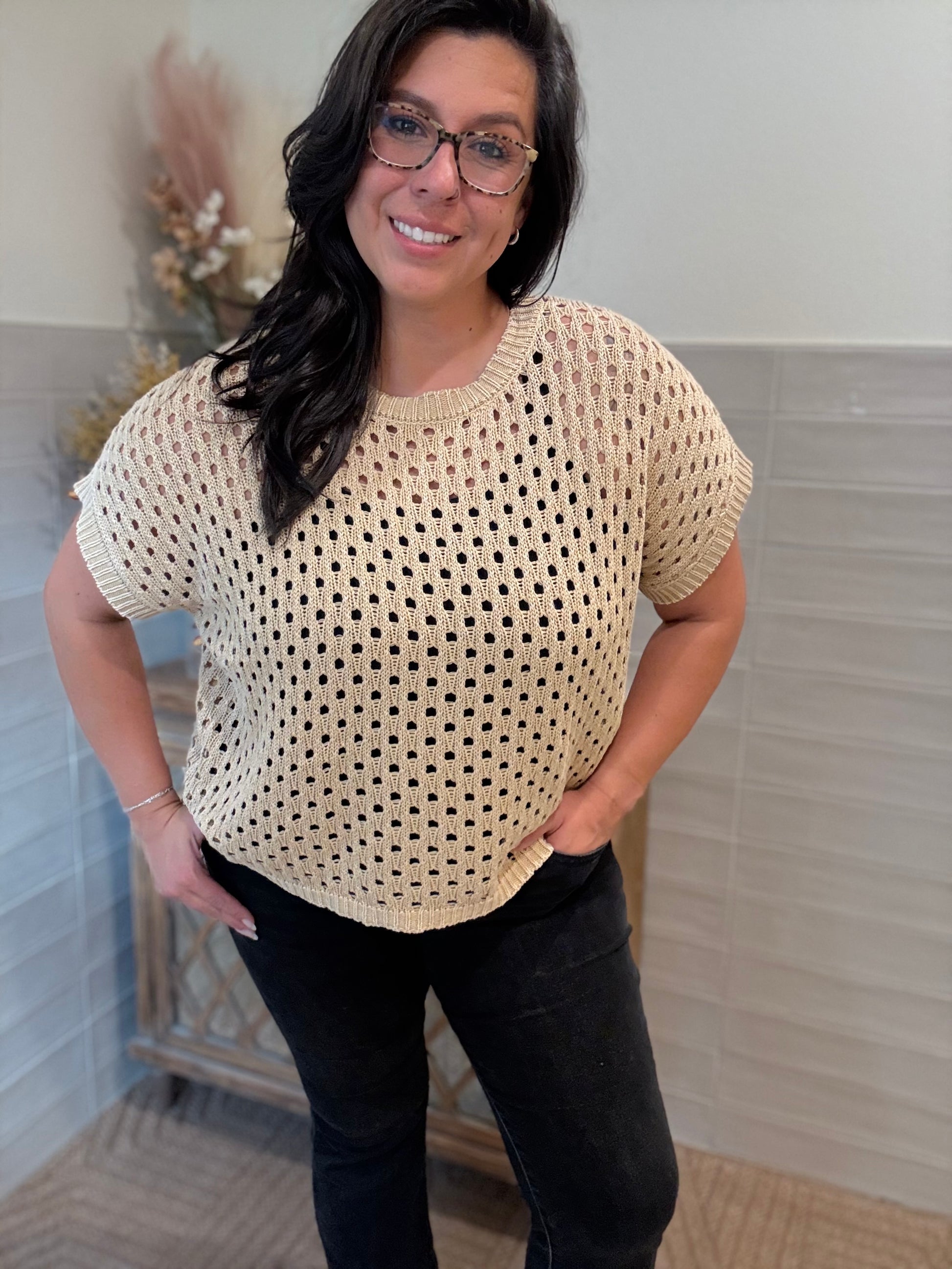 Open Knit Sweater Top